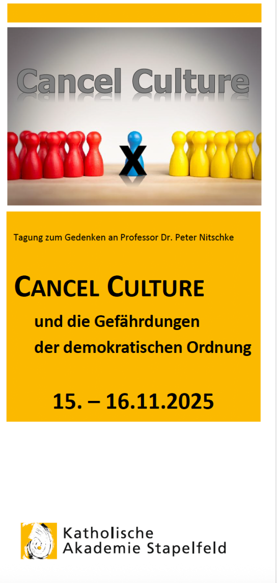 Cancel Culture ist als Schlagwort in aller Munde und wird von jeder politischen Seite (ideologisch motiviert) jeweils anders betrachtet. Unstrittig ist dabei jedoch der Befund, dass unter diesem Schlagwort eine Form der Ausgrenzung verstanden wird, die in sozialer, kultureller und vor allem politischer Hinsicht Menschen mundtot machen soll im öffentlichen Raum. Die Tagung wird hierzu in verschiedenen Perspektiven auf Erscheinungsformen der Cancel Culture in Bereichen von Politik, Wirtschaft, Wissenschaft und Kultur eingehen und Optionen für Verhaltensmaßnahmen und Gegenstrategien diskutieren.
