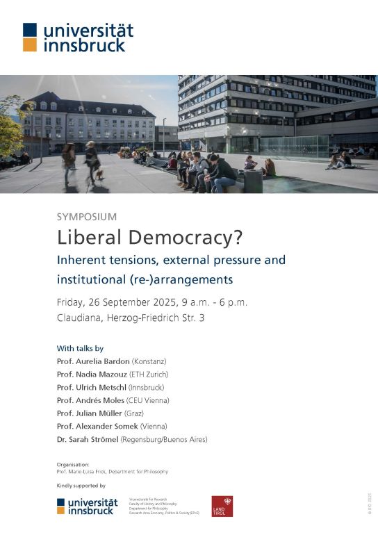 From political polarization and democratic backsliding to contested concepts of neutrality and state legitimacy: liberal democracy is increasingly confronted with both internal tensions and external challenges. The symposium brings together leading scholars in political theory to examine the conceptual foundations and institutional realities of liberal democracy today.